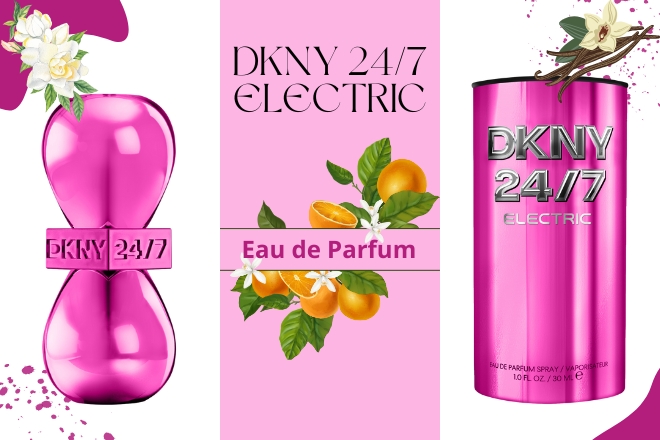 DKNY 24/7 ELECTRIC Eau de Parfum zachycuje vzrušující atmosféru New Yorku po setmění. Vůně z dílny hlavního parfuméra IFF Laurenta Le Guerneca se otevírá záplavou šťavnatých ovocných tónů – její úvod evokuje neonově růžový západ slunce nad panoramatem New Yorku. V samotném srdci se rozvíjí bohatá kytice květin, která ztělesňuje neodolatelnou sebedůvěru při přípravách na večerní výpravu do centra města. Smyslný základ se doslova rozplývá na pokožce a zanechává na ní stopu, která je stejně návyková jako strhující rytmus nočního tanečního parketu.