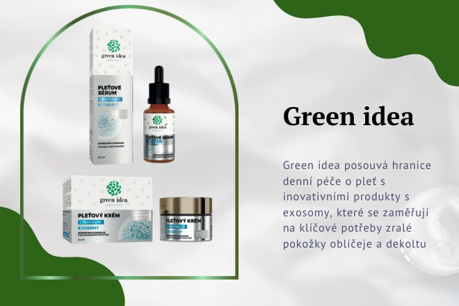 Green idea posouvá hranice denní péče o pleť s inovativními produkty s exosomy, které se zaměřují na klíčové potřeby zralé pokožky obličeje a dekoltu. Pleťový krém a sérum kombinují moderní biotechnologické ingredience s přírodními extrakty, aby pokožku intenzivně vyživovaly, hydratovaly a zanechaly ji tak svěžejší.