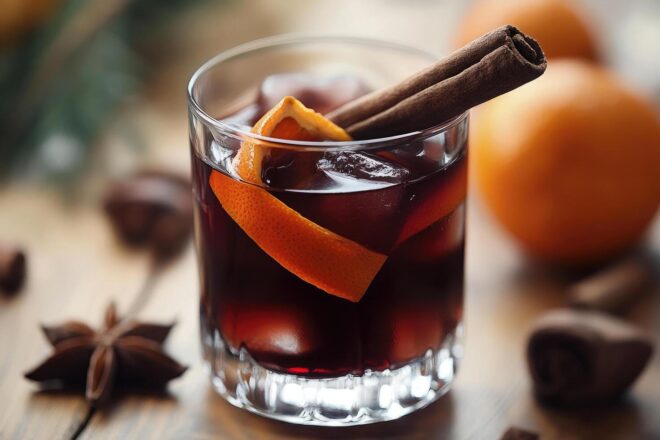 Postup: Do sklenice s ledem nalijte vermut a přidejte mandarinkovou šťávu. Jemně promíchejte, přidejte skořici a ozdobte pomerančovou kůrou. Výsledkem je hřejivý, lehce kořeněný drink s citrusovým závěrem, ideální jako aperitiv ke svátečnímu menu.
