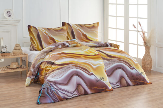 Šest autorských vzorů z kolekce Matějovský × Blanka Matragi — Violet, Zrození, Romance, Aurum, Nokturno a Eterico — přenáší do ložnice energii barev, symboliku a uměleckou hravost světově uznávané designérky a módní návrhářky.