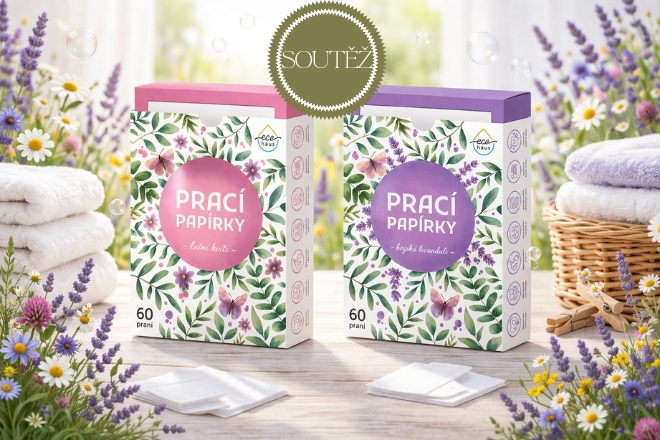 Soutěž: Dopřejte si jednoduché a ekologické praní, které šetří nejen vaši domácnost, ale i planetu. Zapojte se do soutěže a vyzkoušejte moderní způsob praní, který dává smysl. Na 3 z vás čeká balíček EcoHaus v hodnotě 1200 Kč, který obsahuje Prací papírky božská levandule (60 praní) a Prací papírky luční kvítí (60 praní).